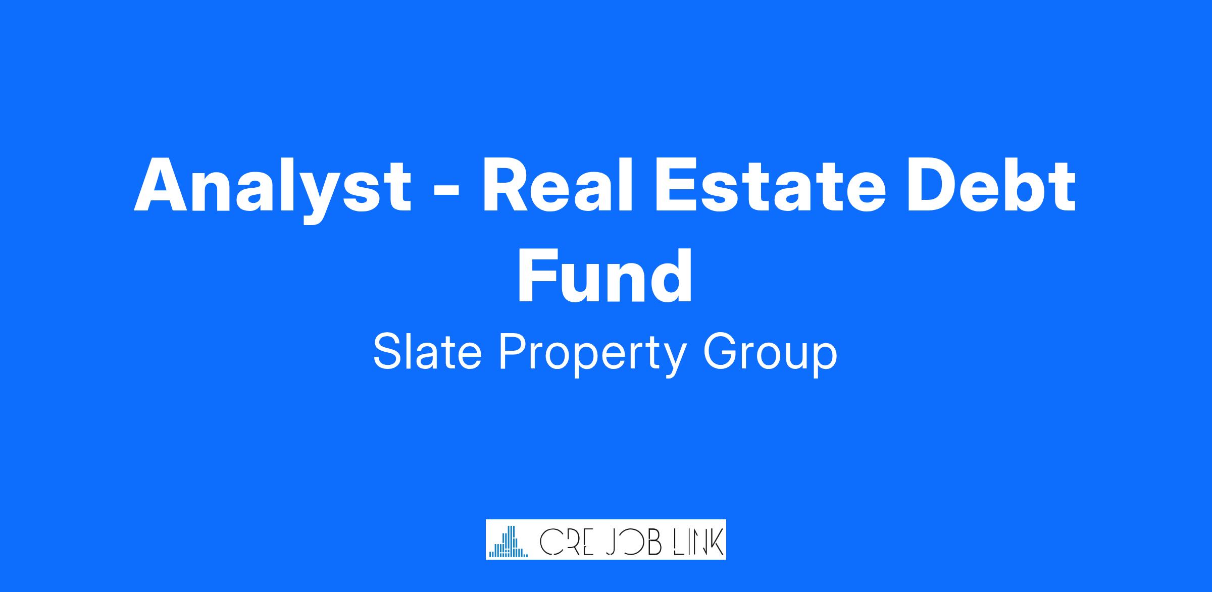 Slate Property Group (“Slate”) is seeking an Analyst to join its real estate lending and credit arm, SCALE Lending LLC (“SCALE”). The Analyst will focus on underwriting, research and asset management on commercial real estate debt transactions. The candidate should be self-motivated, work effectively in teams, detail oriented, and be able to work on multiple transactions at once in a fast-paced environment.