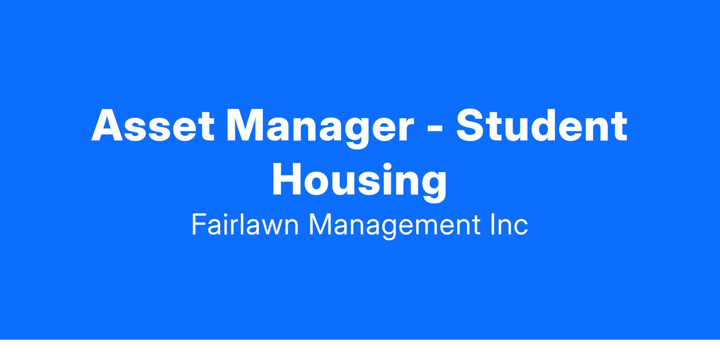 We are seeking a high-performing Asset Manager to oversee the financial performance of our Student Housing Portfolio. The ideal candidate will embody Fairlawn's core values: Be Kind, Own It, Be Flexible, and Always Improve.