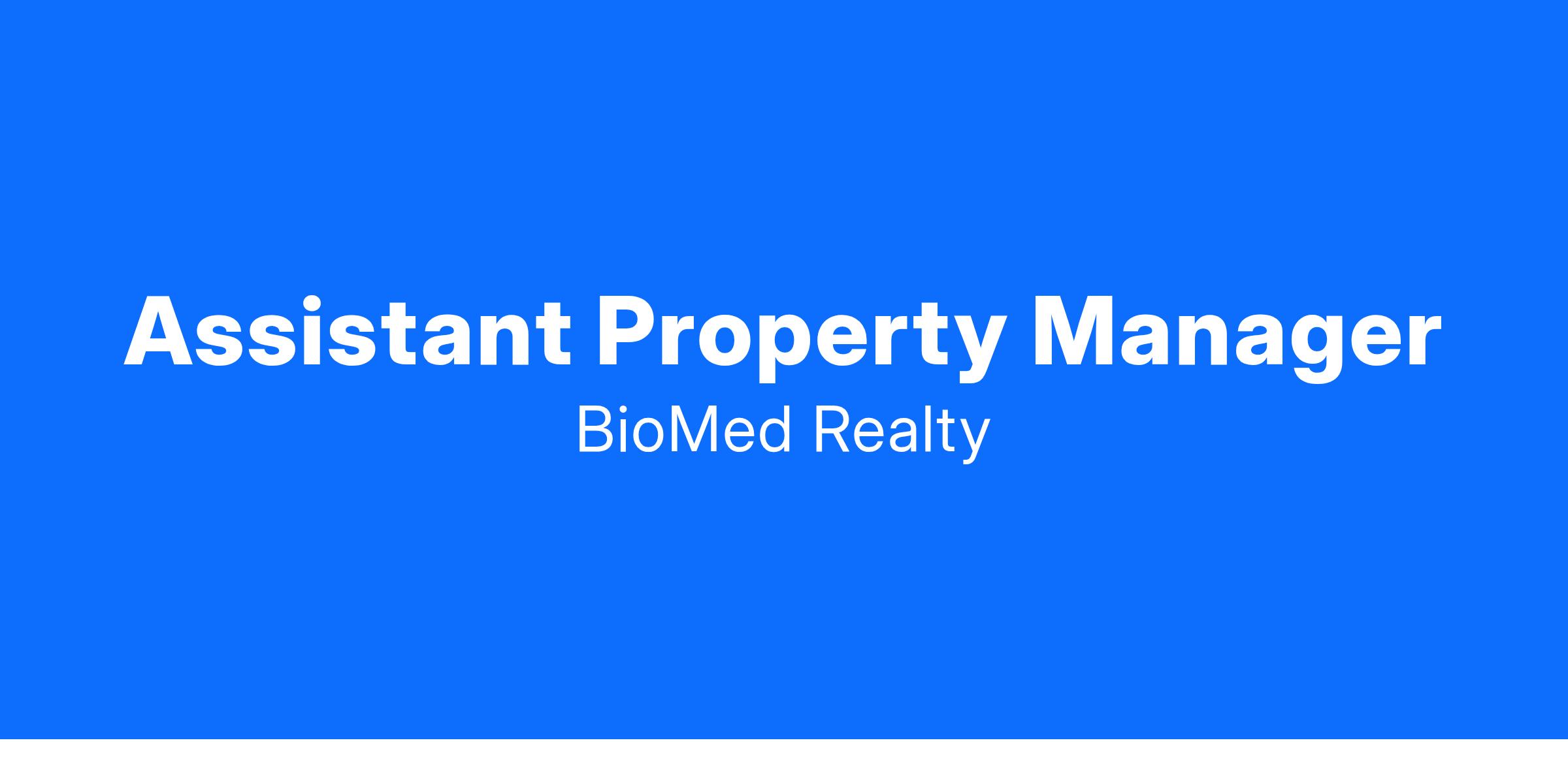BioMed Realty is looking for an Assistant Property Manager, assisting the Senior Property Manager, for our 1.4 million square foot Bay Area campus, comprising 10 office and life science buildings. You'll work with our property management team to oversee daily operations, maintenance, and construction activities across our life science properties.