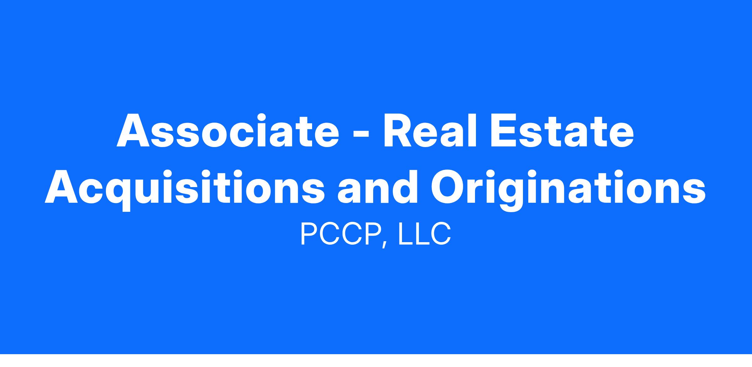 Associate - Real Estate Acquisitions and Originations