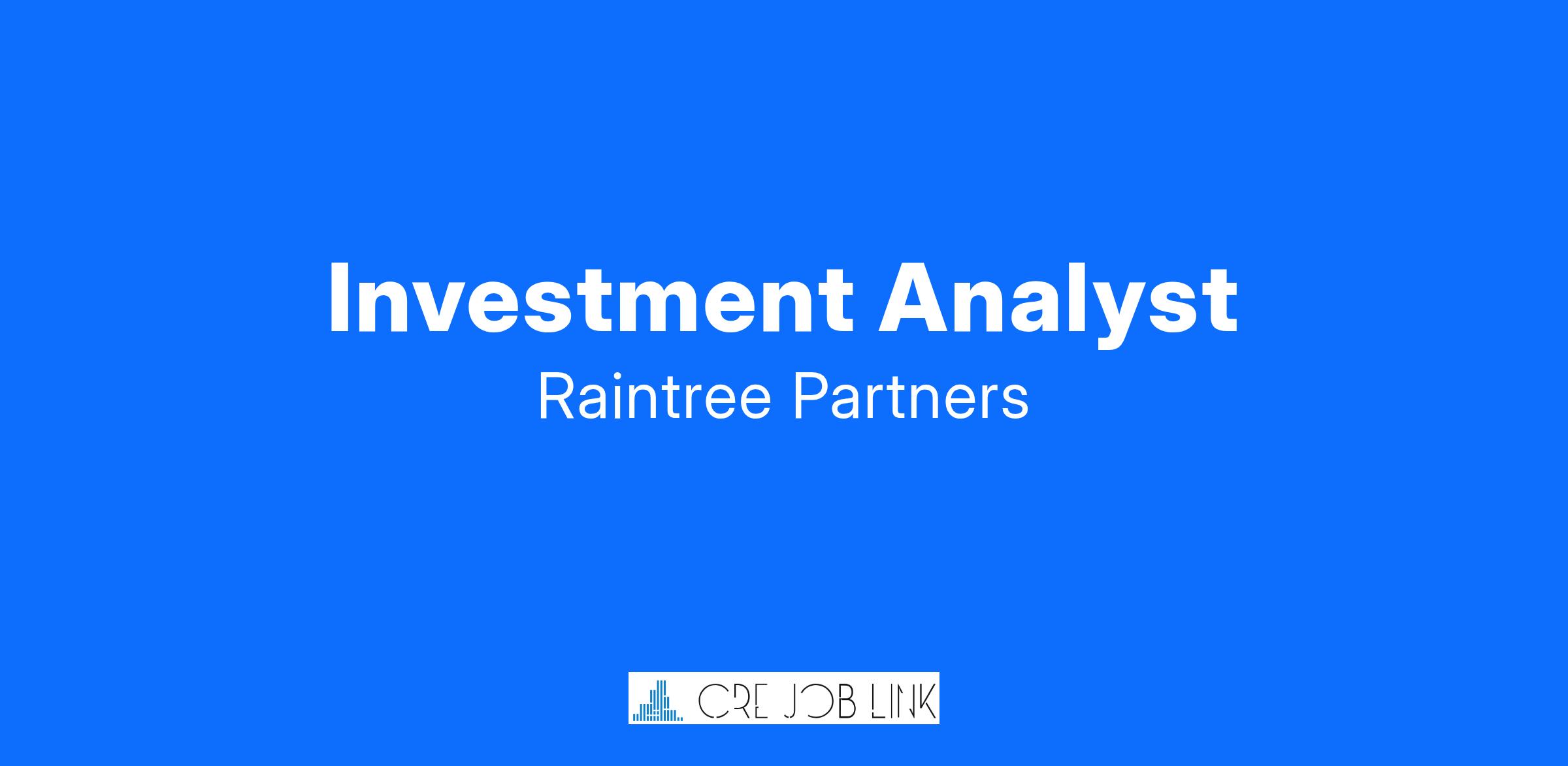 Raintree provides a compensation package that is competitive and commensurate with experience and qualifications. The annual base salary range for the Investment Analyst position is $75,000-$110,000, excluding a potential discretionary bonus.