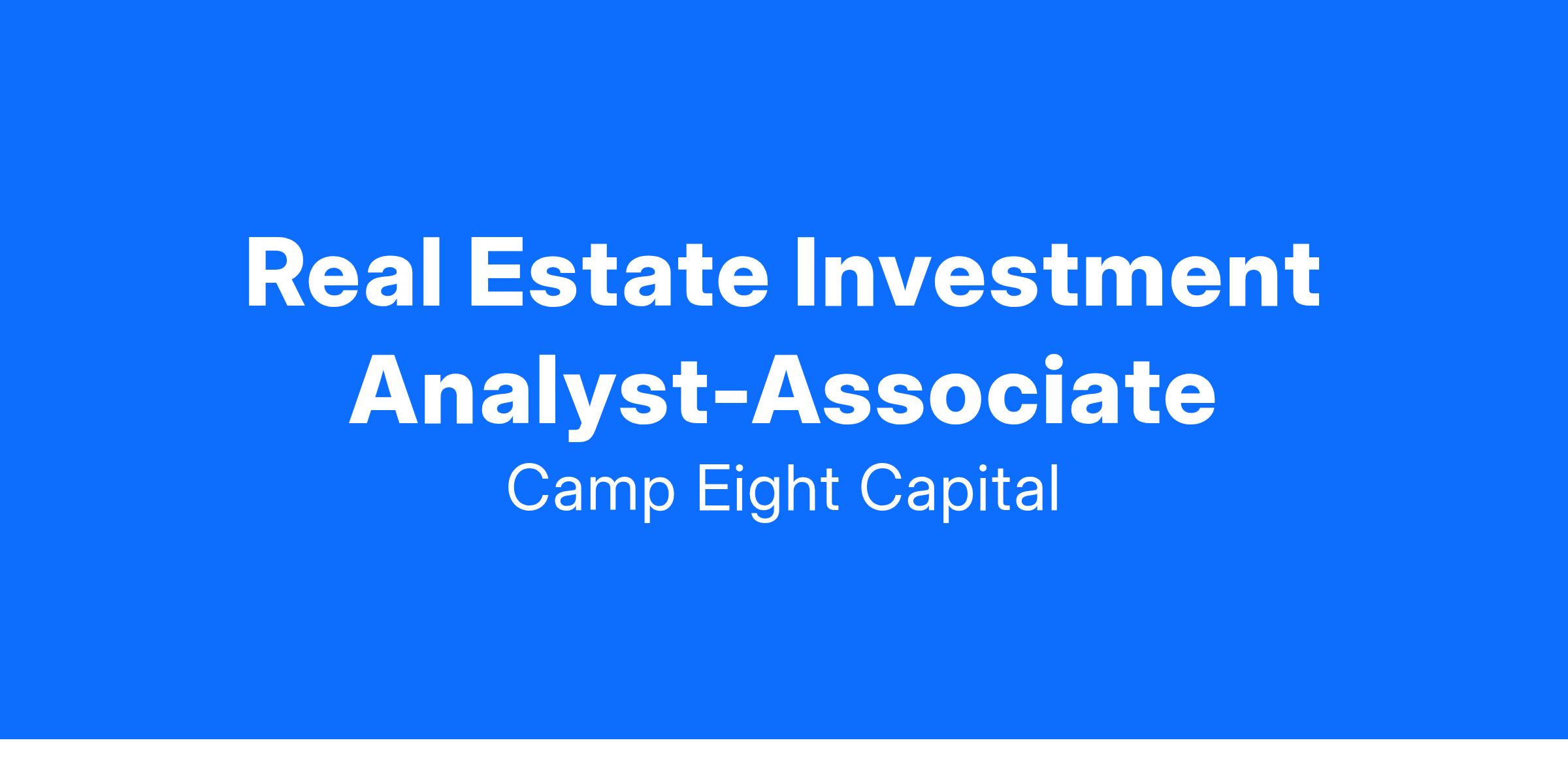 Camp Eight Capital is seeking a highly motivated analyst/associate for our growing team based in Rye Brook, NY. The ideal candidate will have 1-3 years of prior real estate experience, preferably at a bank, brokerage, private equity or investment firm. The analyst/associate will be directly involved in all areas of the acquisitions, development, and asset management processes, including underwriting, due diligence, and ongoing oversight of the business plan. He or she will report to the VP of Investments. This is an in-office position.