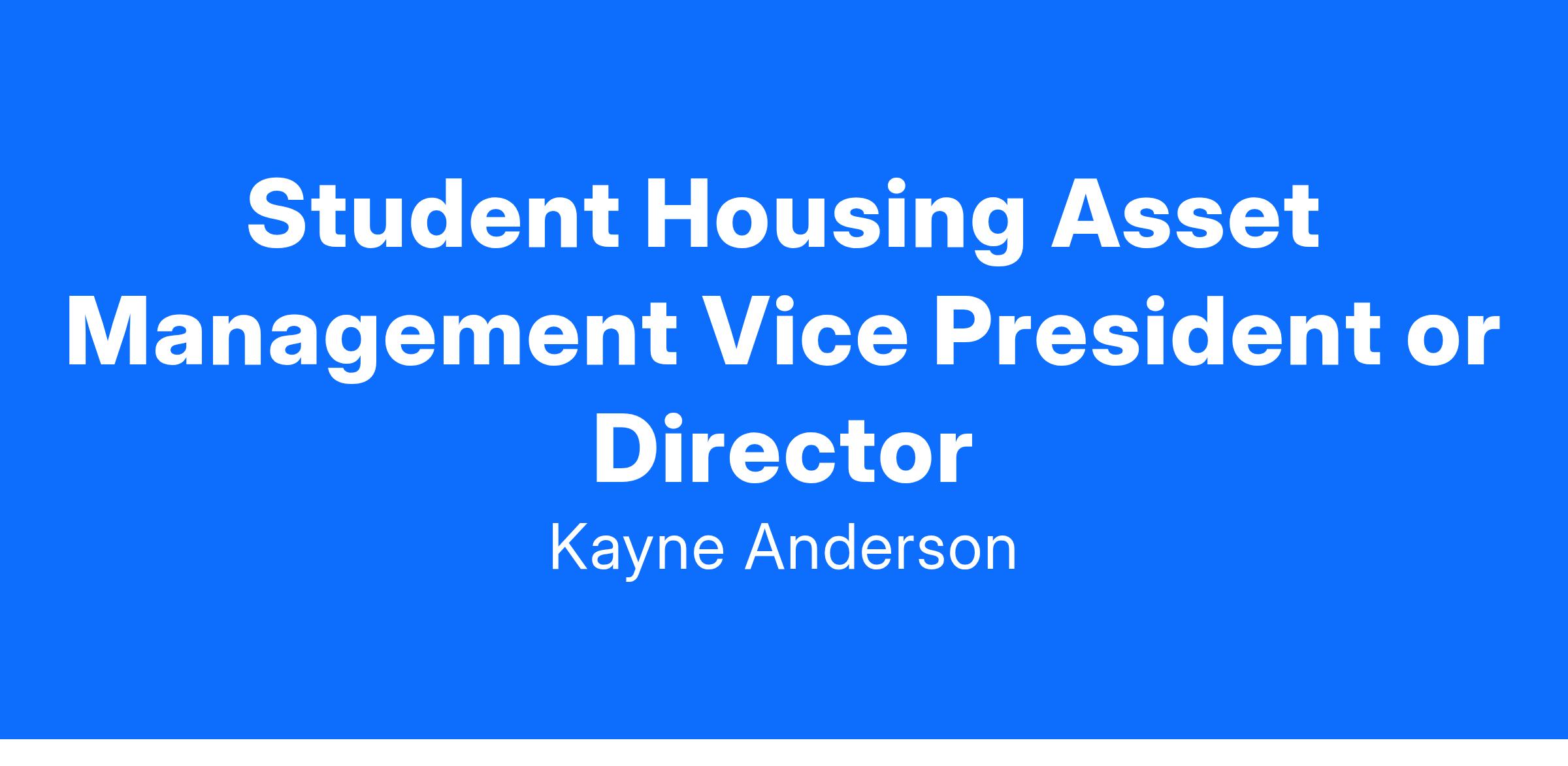 Kayne Anderson Real Estate is searching for a Vice President/Director of Asset Management of Student Housing. This position will oversee a portfolio of multifamily and student housing assets, which includes stabilized assets, repositioning, ground-up development, and/or redevelopment projects. The position reports to the Senior Managing Director and Managing Director of Asset Management, who oversees the Student Housing and Multifamily sector vertical. This position will be based in the firm’s Boca Raton, Florida office.